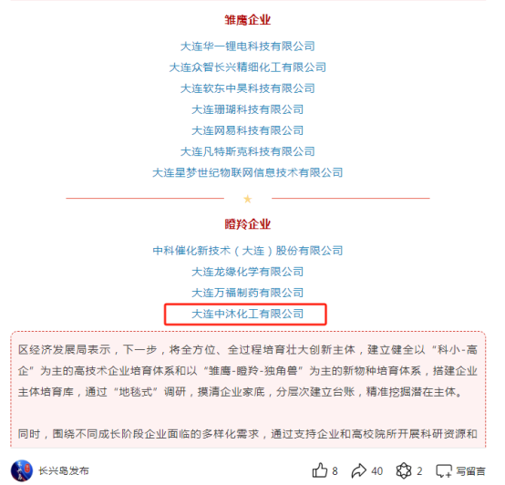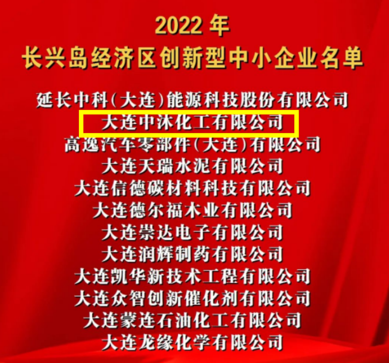 大連中沐化工有限公司被認定為遼寧省瞪羚企業(yè)